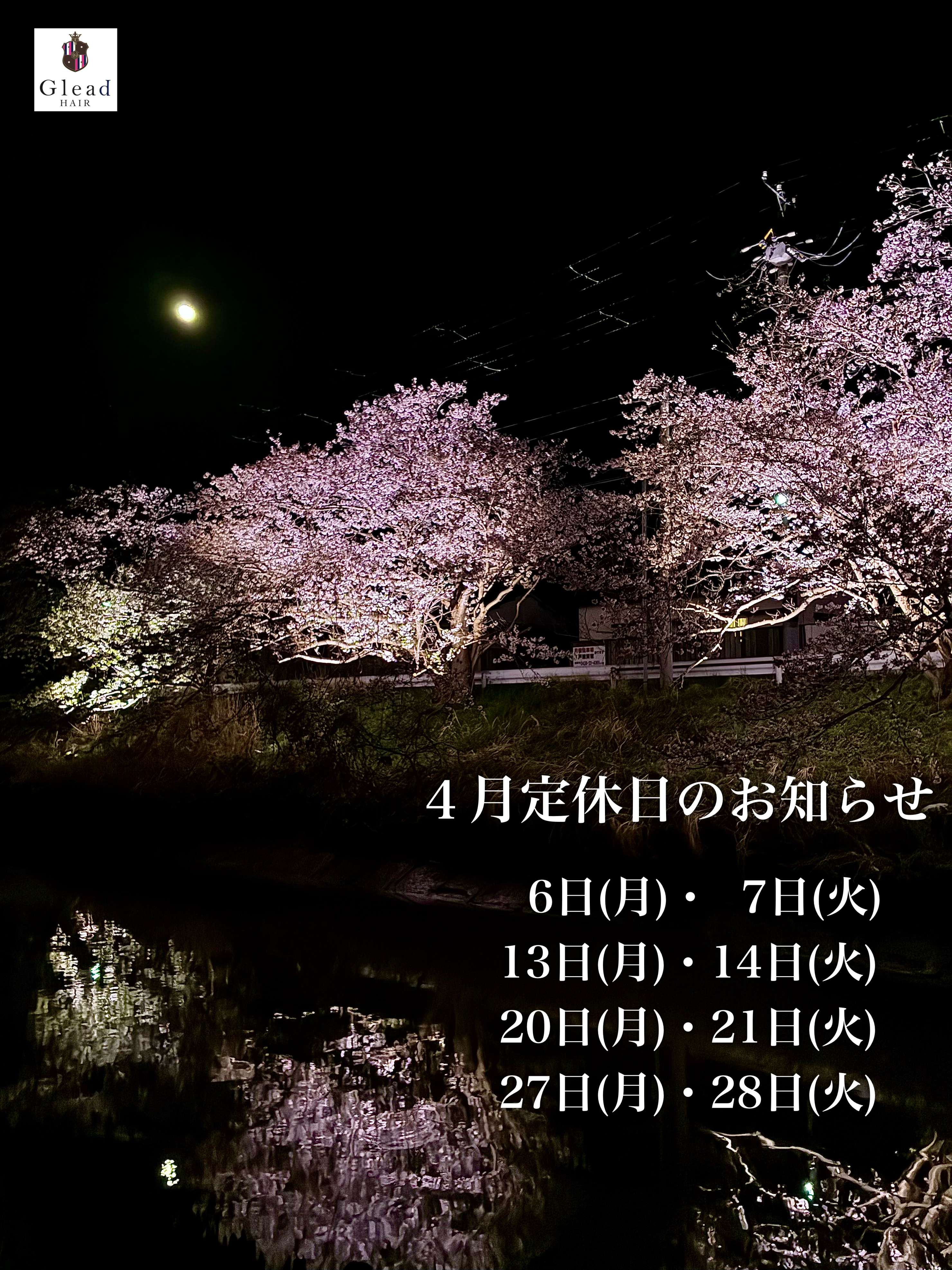 4月定休日のお知らせ